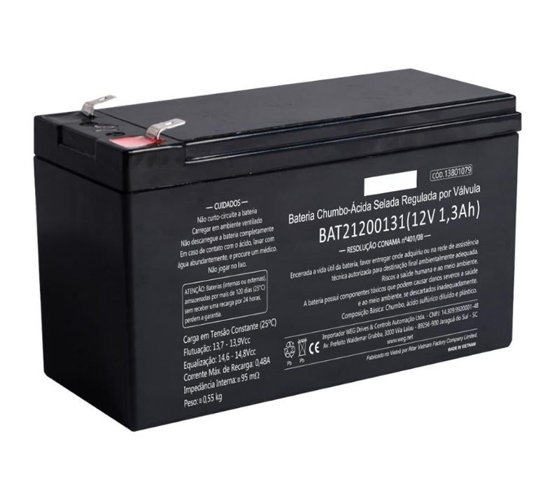 Em conformidade com a Resolução 401/08 do CONAMA - Conselho Nacional do Meio Ambiente, a WEG está apta e devidamente cadastrada junto aos órgãos competentes para promover o correto descarte das baterias por ela comercializadas.