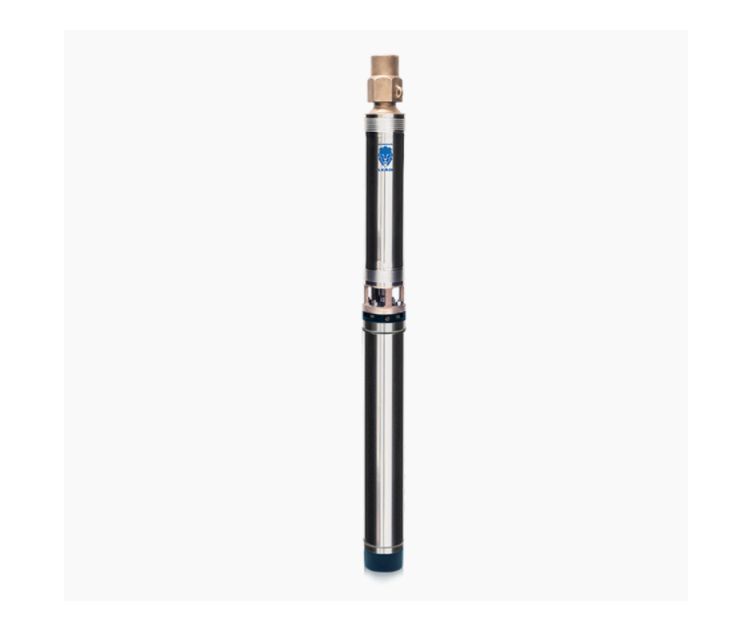 Motobomba submersa acoplada em motor elétrico lubrificado a água projetado para operar dentro d'água em grandes profundidades.