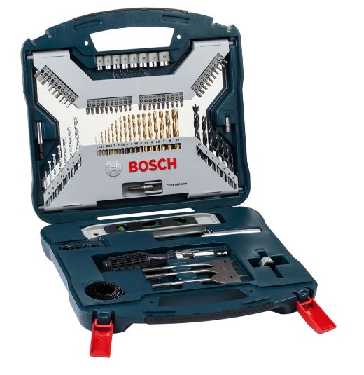 Ideal para qualquer furo ou parafusamento, o Kit de Acessórios X-line da Bosch conta com 100 peças de titânio entre brocas, pontas aparafusadoras, ferramentas auxiliares, entre outras. Acondicionados em uma prática maleta, os acessórios são compatíveis com Furadeiras e Parafusadeiras elétricas ou manuais.