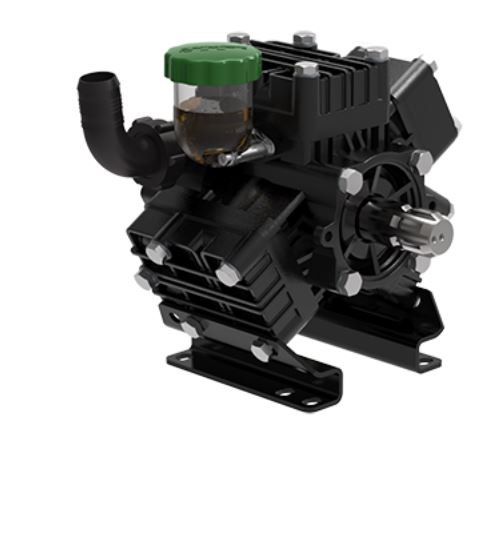 A bomba de 3 diafragmas KAPPA 65 produz um fluxo de 67 l/min e opera a uma pressão máxima de 40 bar. Está disponível com eixo estriado/cilíndrico simples ou duplo.