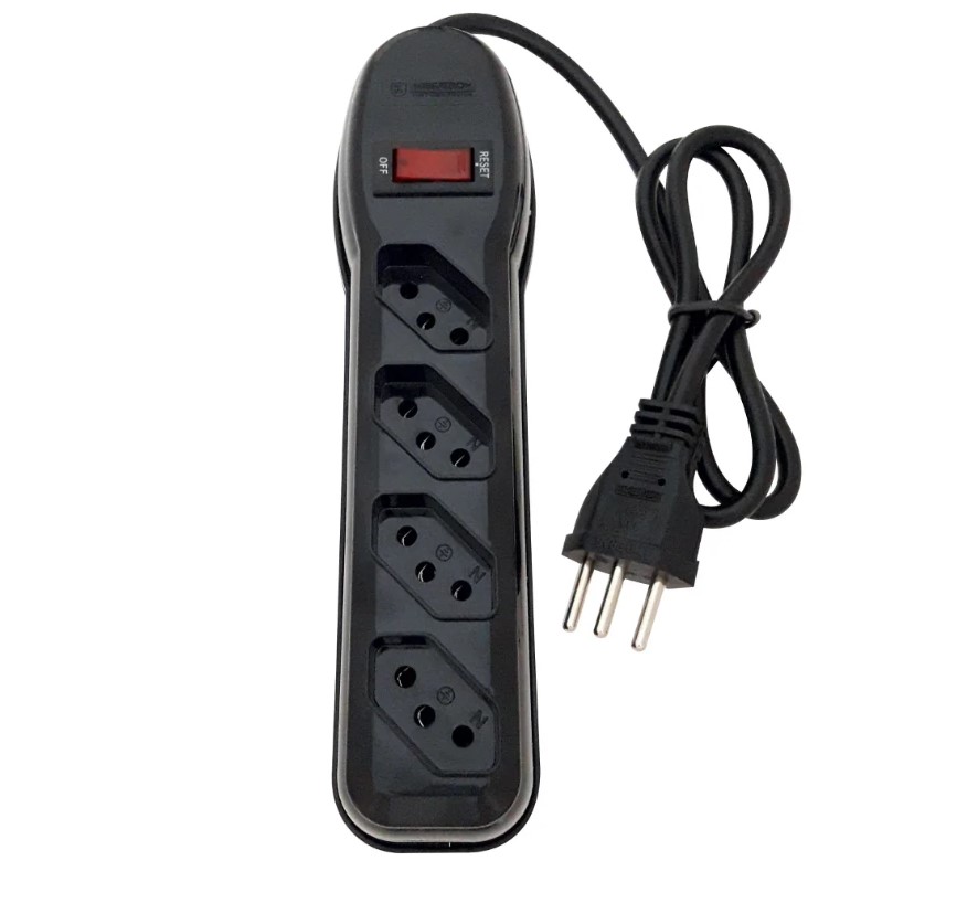 FILTRO DE LINHA CIRCUIT BREAKER 4 TOMADAS 10A PRETO BIVOLT 1 METRO - MEGATRON